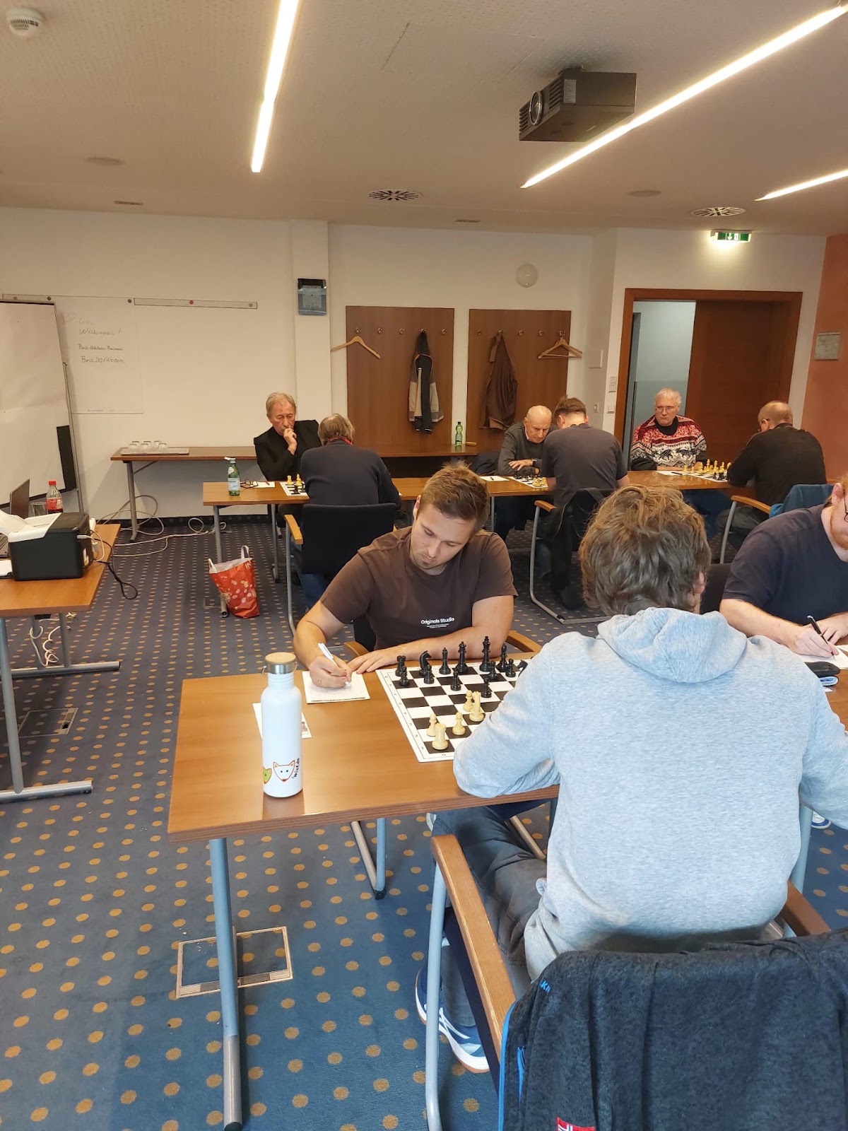 Meine Partie dauerte 4,5 Stunden – ich konnte sie am Ende durch einige Ungenauigkeiten meines Gegners gewinnen.